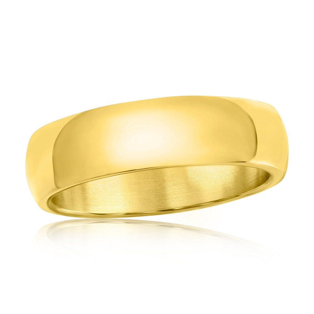 Sleek and masculine, this 6mm polished band is available in silver, Black IP, or gold plating. Built for daily wear, it combines durability with timeless style. Sizes 8–13 ensure the perfect fit.