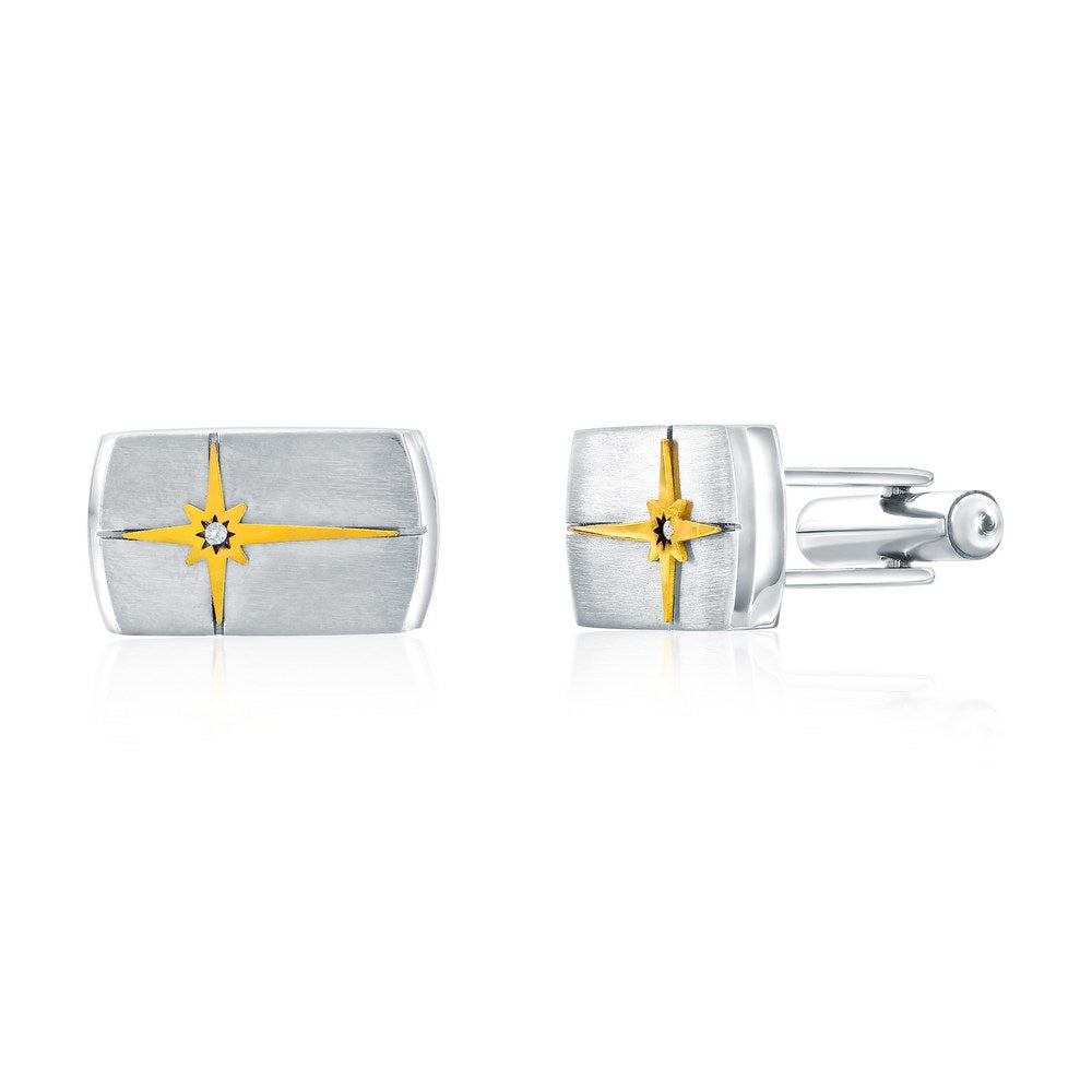 Crafted from durable stainless steel, these 12x20mm Cufflinks feature a striking North Star design accented with a brilliant cubic zirconia stone centerpiece. A perfect blend of sophistication and symbolism, they offer timeless elegance for formal attire and meaningful gift-giving.