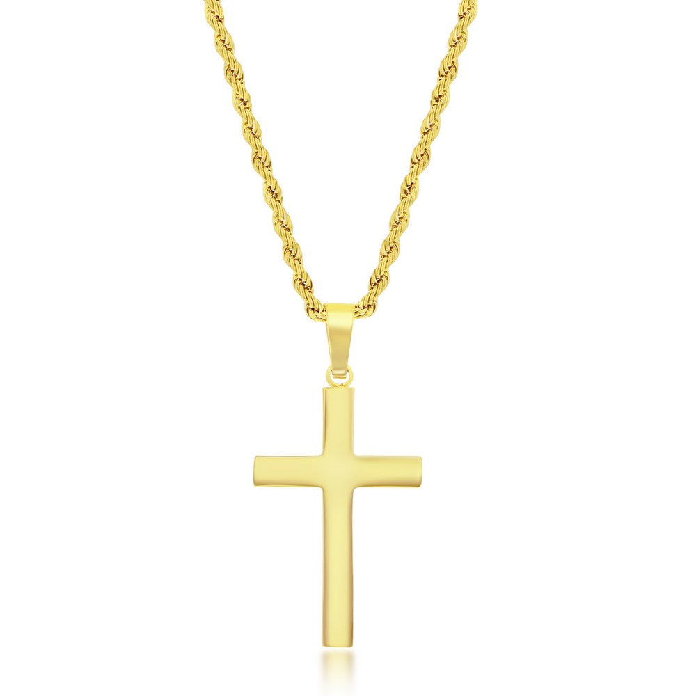 Enhance both casual and formal style with this his polished cross necklace is expertly made from stainless steel and finished in a luxurious gold tone. Designed to symbolize faith and resilience, it offers a refined look with enduring quality, perfect for daily inspiration or meaningful gifting.