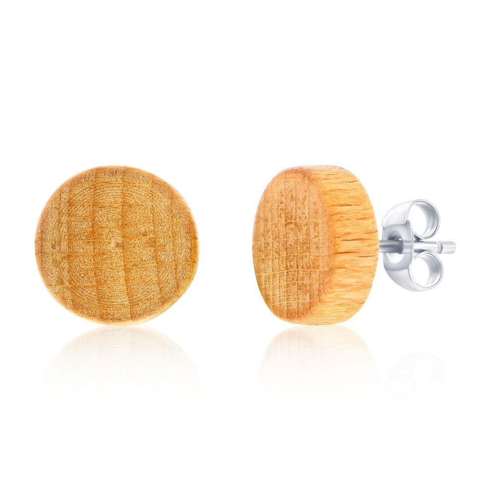 Round Wood Stud Earrings