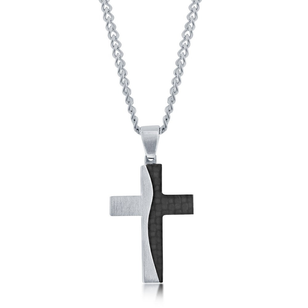 Silver and Carbon Fiber Cross Necklace