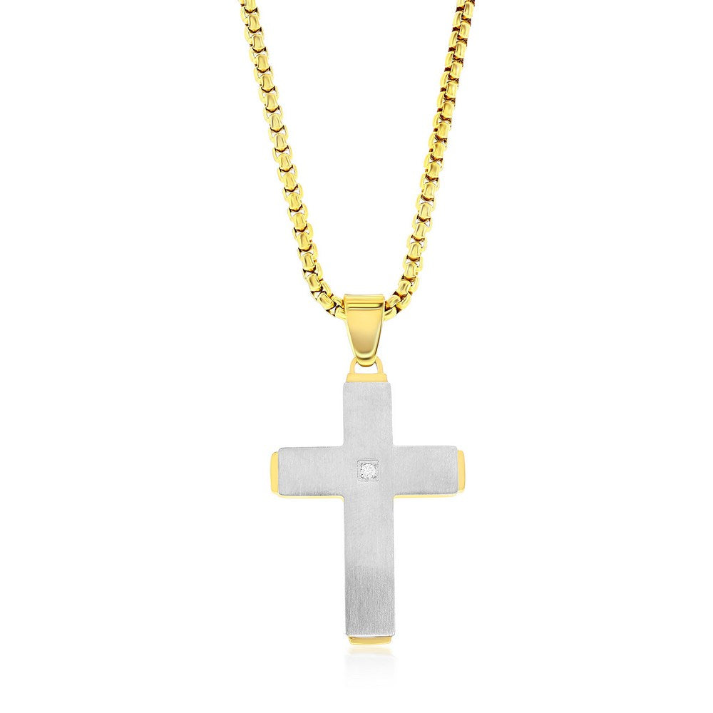 Two-Tone Satin Cross Necklace with Brilliant Stone